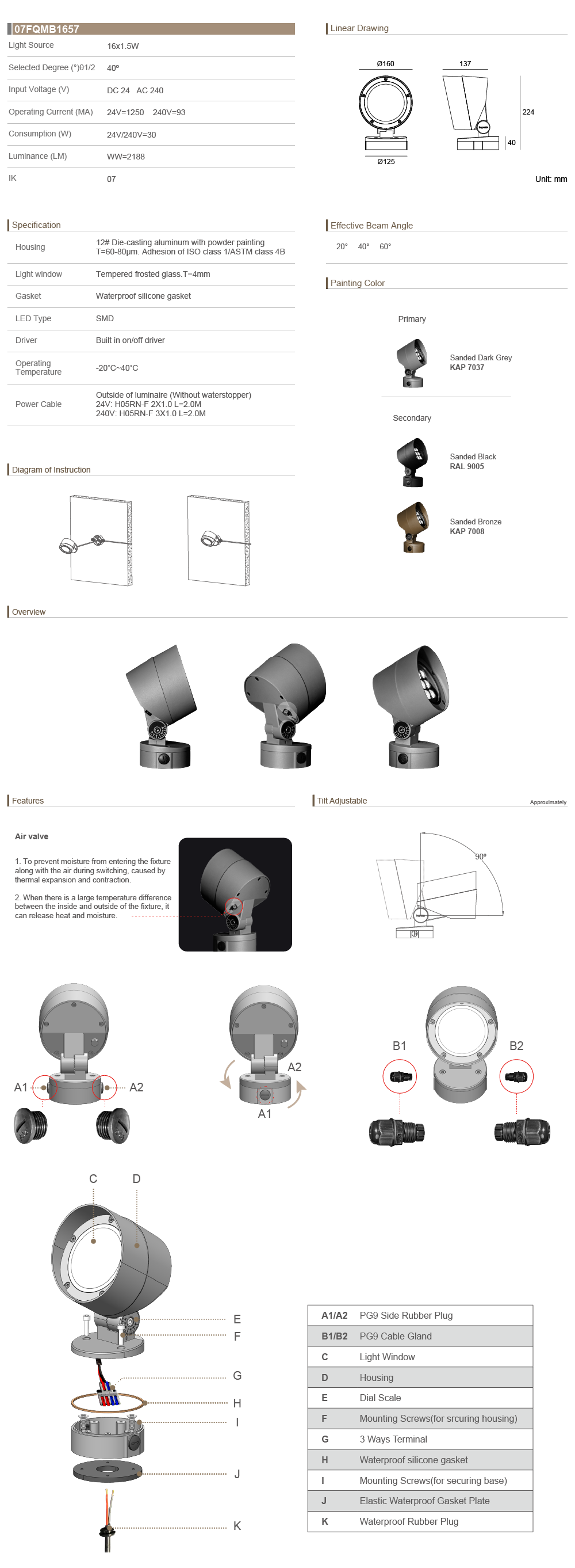 Tiltable Directions Linear Inground Light