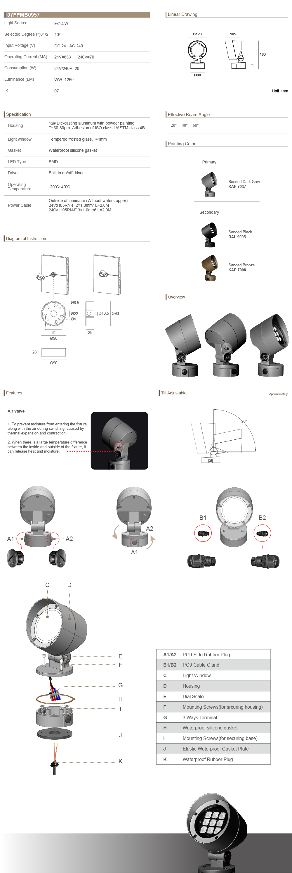 Tiltable Directions Linear Inground Light