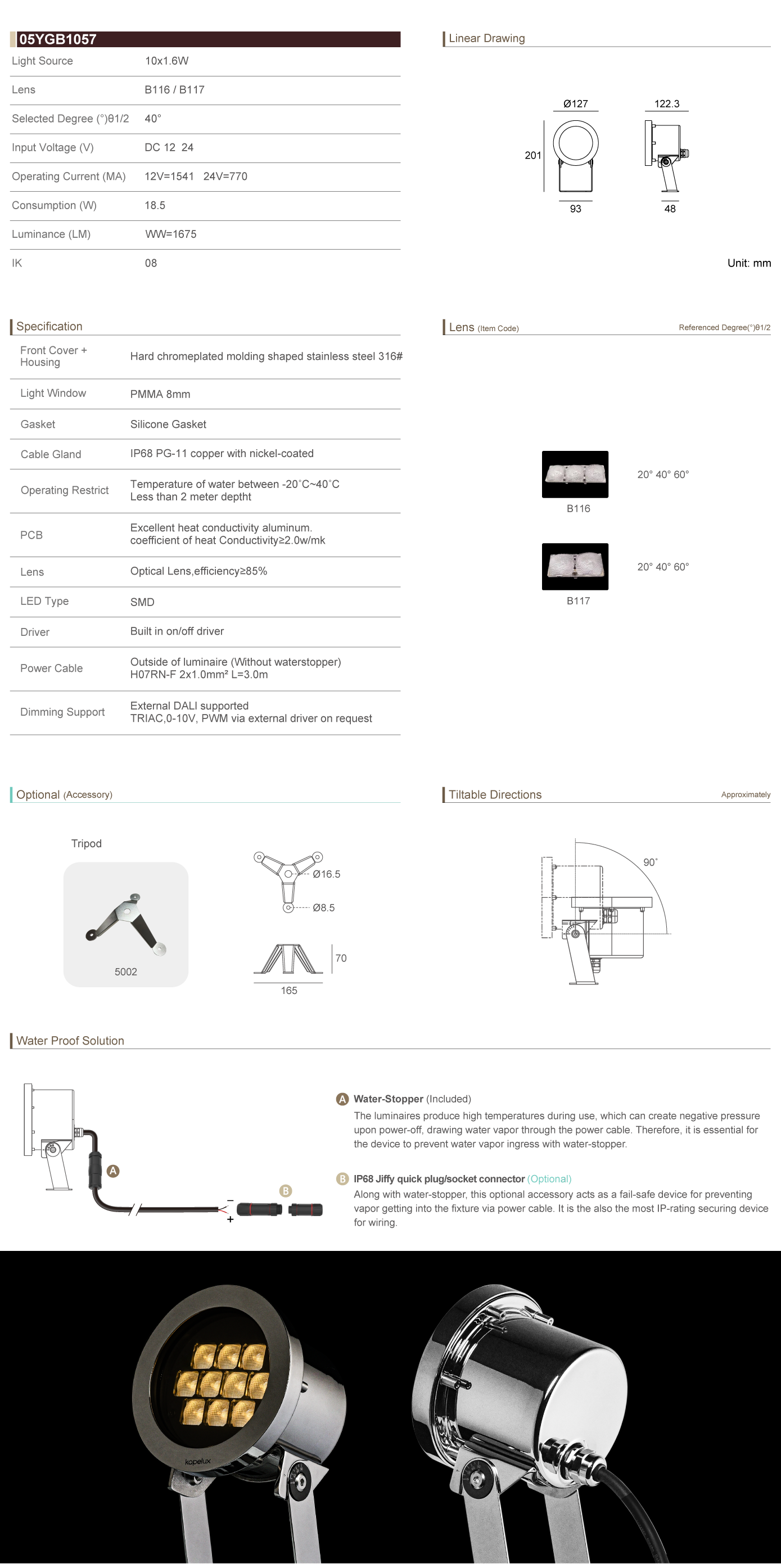Tiltable Directions Linear Inground Light