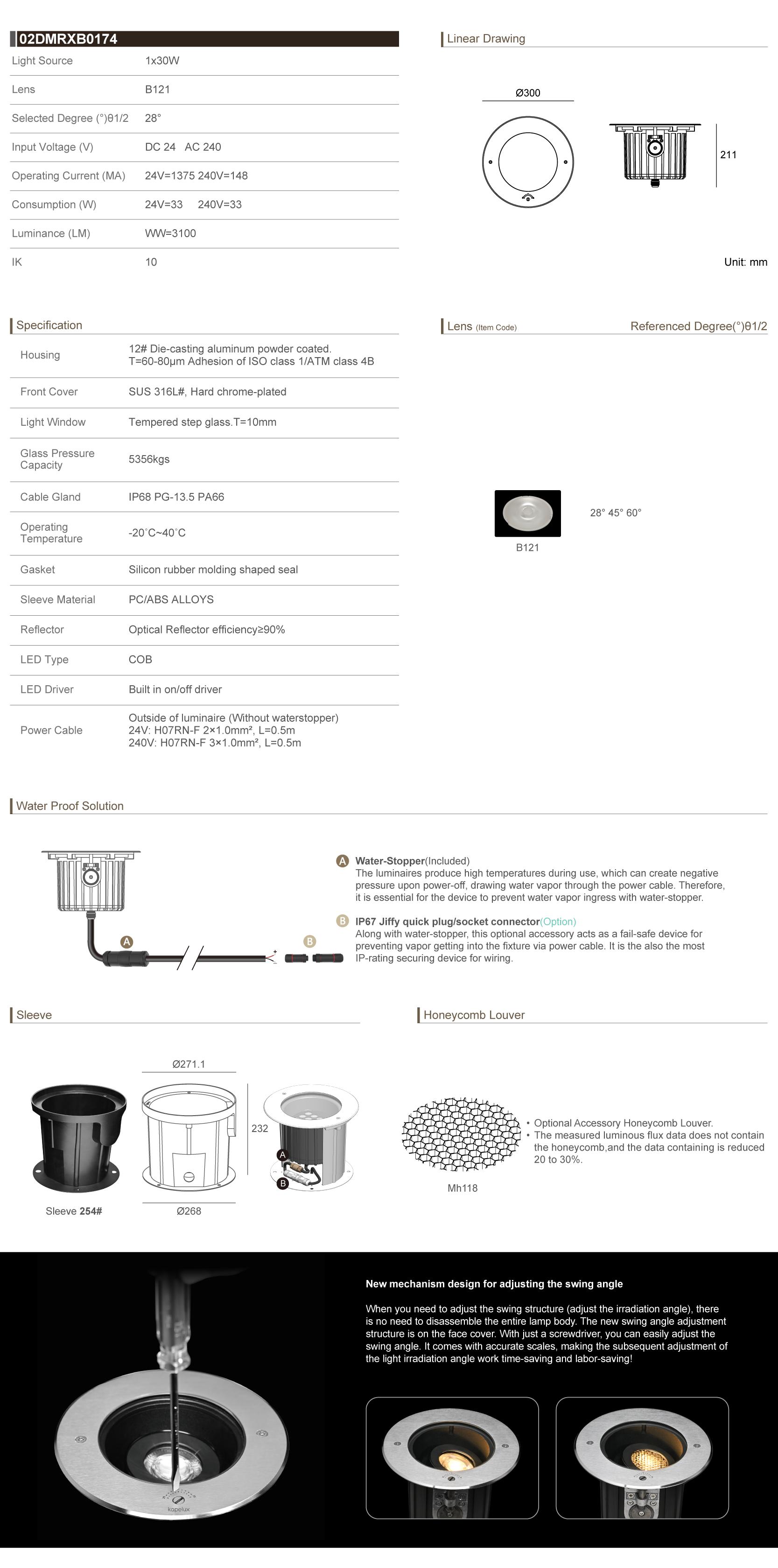 Tiltable Directions Linear Inground Light
