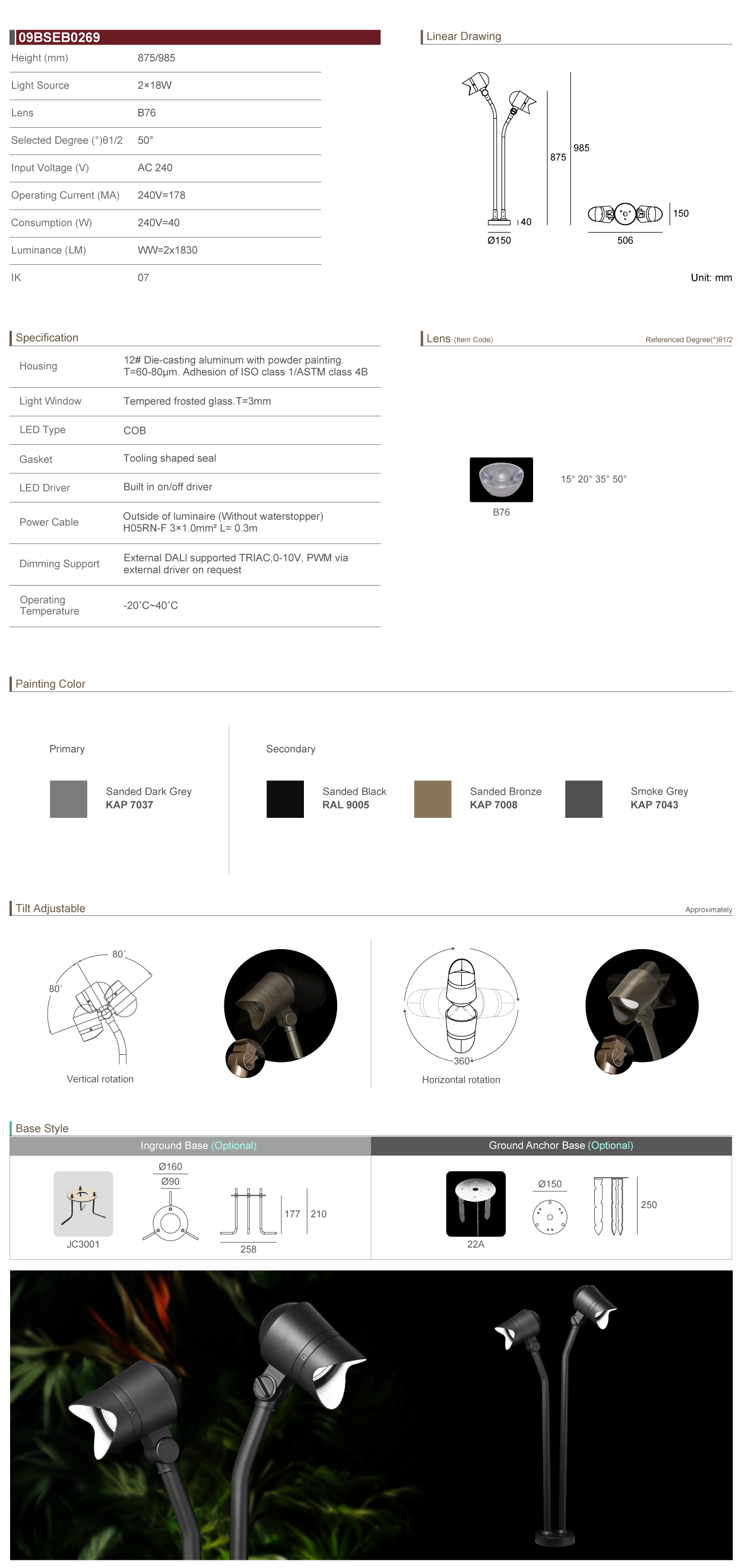 Tiltable Directions Linear Inground Light