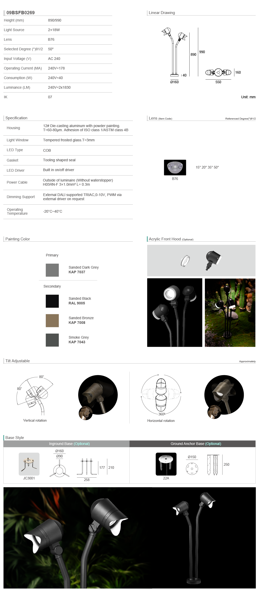 Tiltable Directions Linear Inground Light